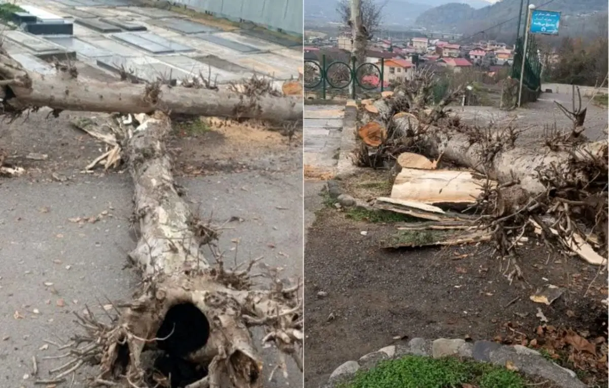 نیره خادمی-درختها که یک به یک روی زمین افتادند، مردم محله دیدند که چطور زمین خدا به لرزه افتاد. کارگران با ارههای برقی به جان درختهای قدیمی امامزاده هاشم رشت افتاده بودند و ۸ تا ۱۵ درخت را قطع کردند. عصر یکشنبه، یکی از زنان محل که شهروز تحملی او را خالهخانم صدا میکند، این صحنه را دیده بود و وقتی به کوچه رسید به محض دیدن او و بقیه مردم محله خبر را به آنها گفت.